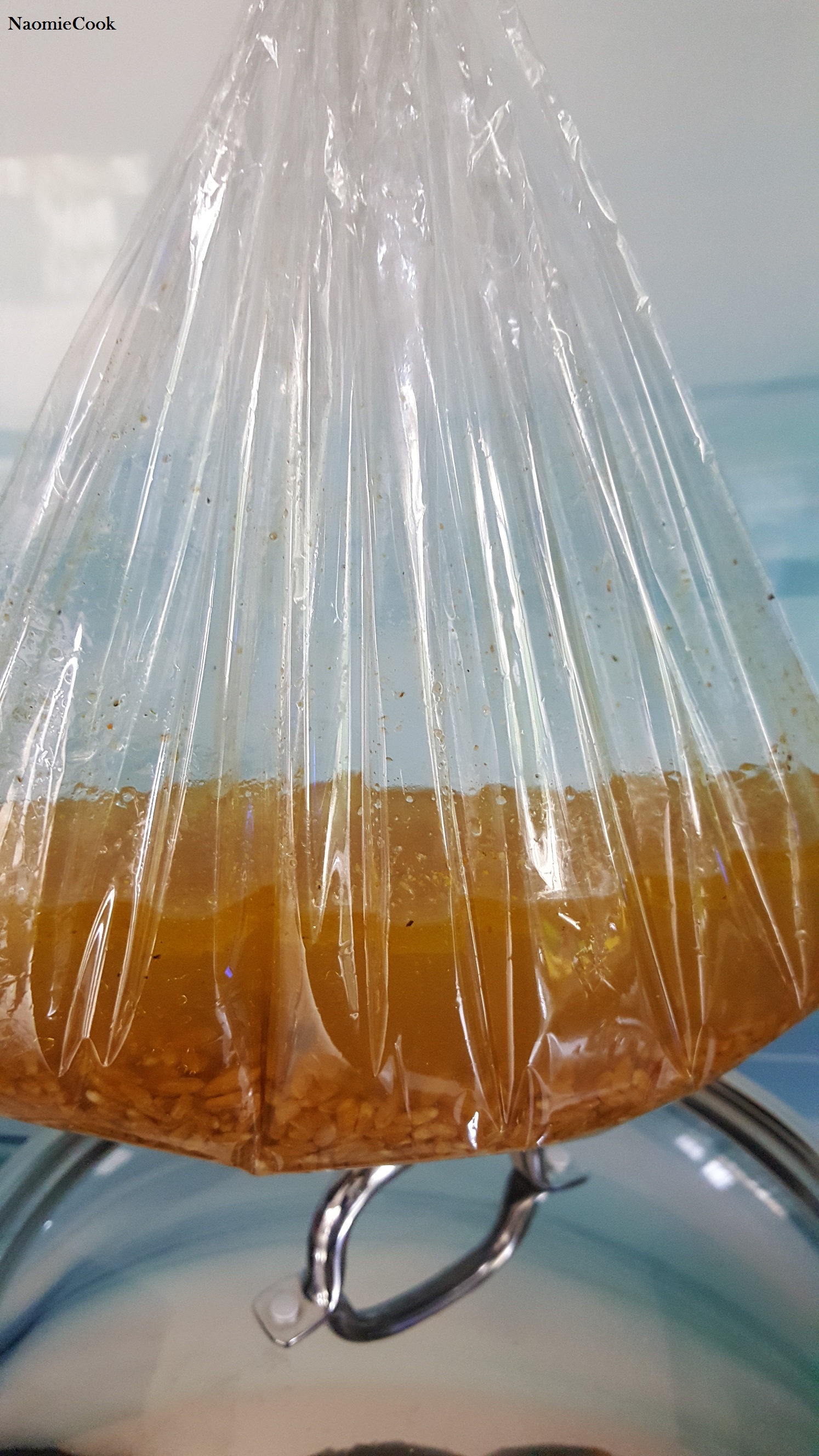 5- On prépare les sachets de blé et riz : j’utilise des sacs de cuisson sprécifiques comme présenté en photo.